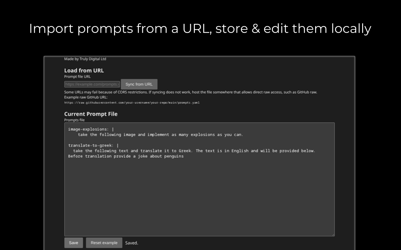 - If you store prompts with a third party such as on GitHub, you have the option to pull from there